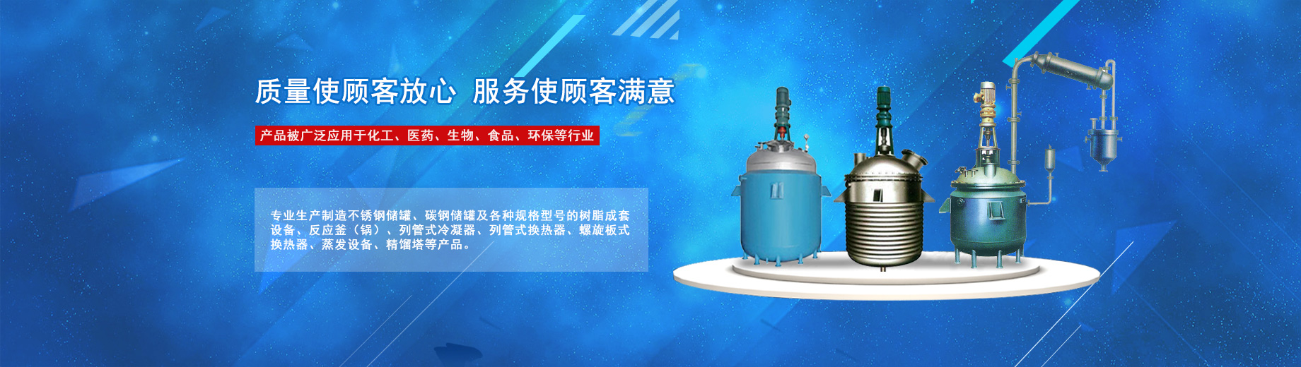 公司專業生產制造不銹鋼儲罐、碳鋼儲罐及各種規(guī)格型號的樹脂成套設備、反應釜(鍋)、列管式冷凝器、列管式換熱器、螺旋板式換熱器、蒸發(fā)設備、精餾塔等產品,被廣泛應用于化工、醫(yī)藥、生物、食品、環(huán)保等行業。